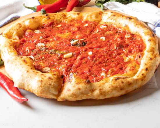 A: The least expensive standard 12-inch pizza listed is the Marinara, which has its own set price.