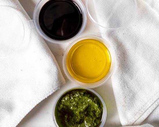 A: Sides include Parmesan truffle fries and various focaccia options, along with dips like Chilli Oil and Truffle Oil.