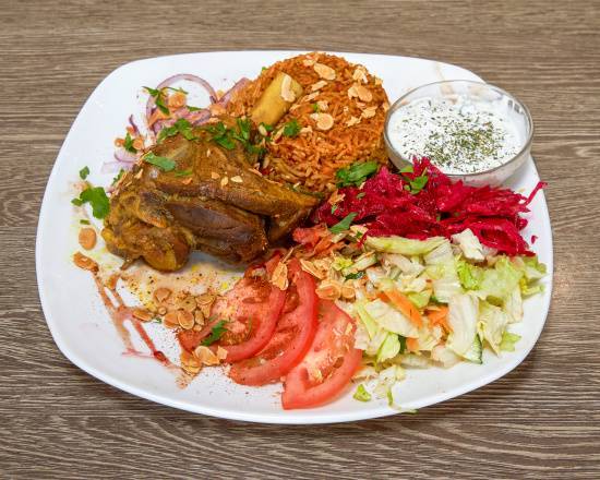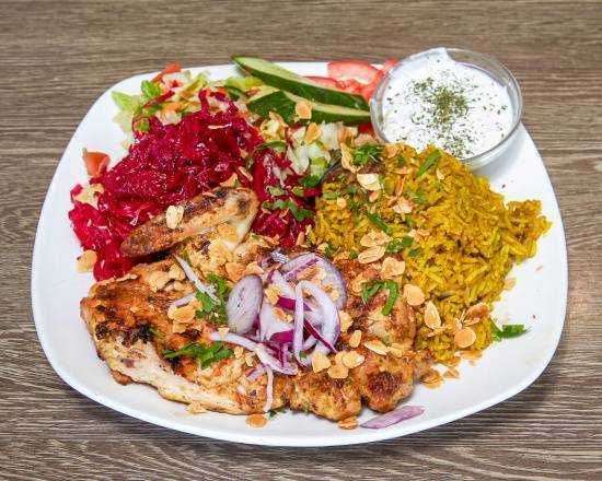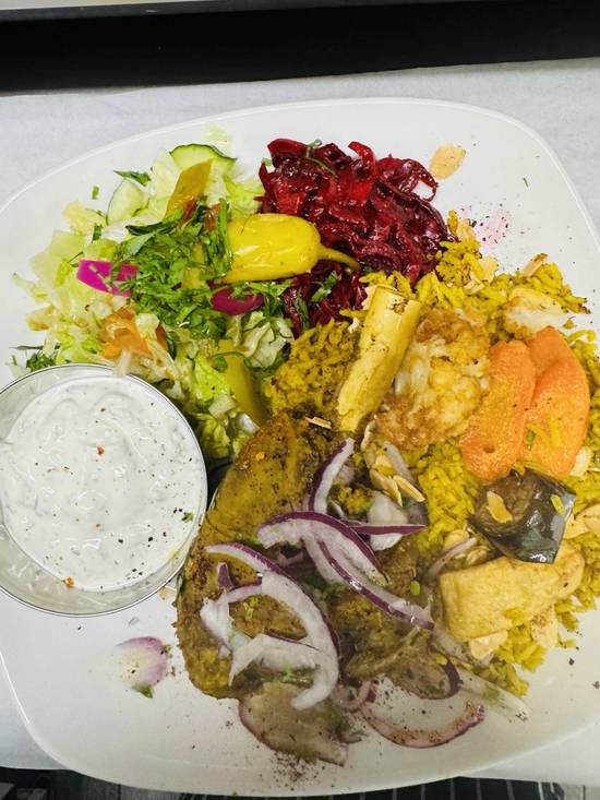 Al Quds Special Middle Eastern Dishes – (All served with mixed salad, 1 tub chilli sauces and 1 tub garlic sauce )