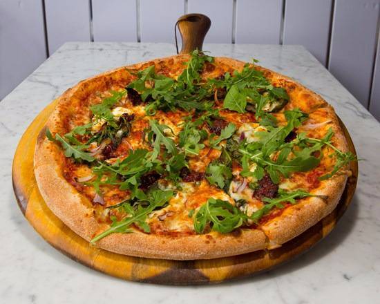 A: Pizzas are available in Medium 10″, Large 13″, and Extra Large 15″ sizes.