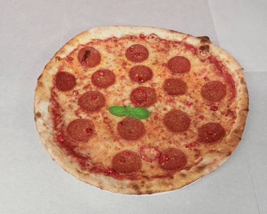 A: The Diavola Pizza is topped with double pepperoni and roasted chillies.
