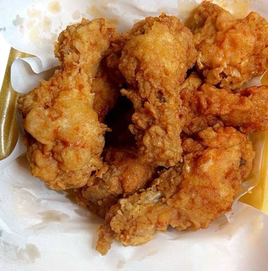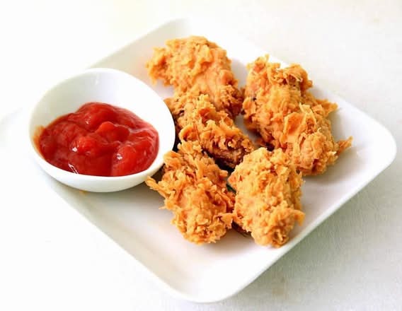 A: Items include fried chicken pieces, chicken strips, spicy wings, and chicken popcorn.