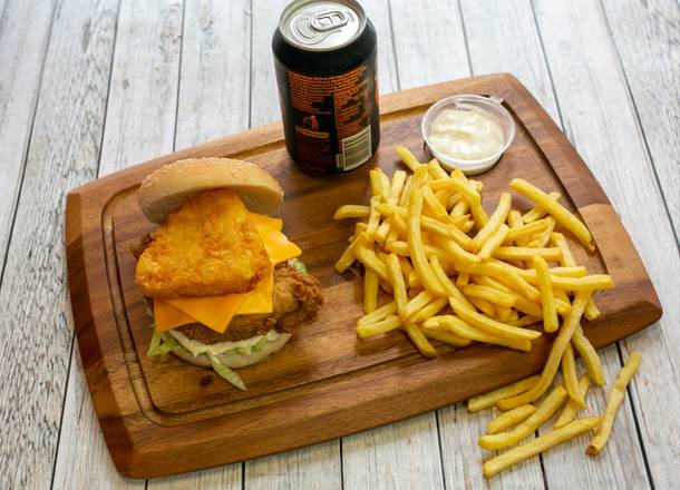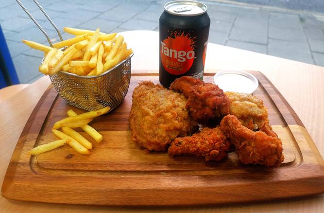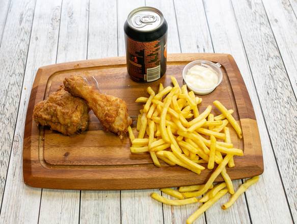 A: Fried Chicken Meals typically include fries and a can of a soft drink.