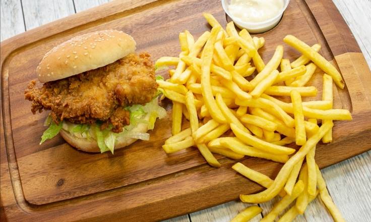 A: Burgers include Chicken Fillet Burger, Cheese Burger, and Spicy Bean Burger.