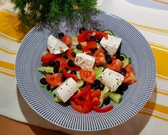 A: Available salads include Greek Salad, Bulgarian Salad, Caesar Salad, Continental Salad, and Aubergine Salad.