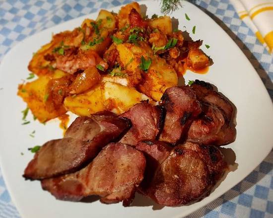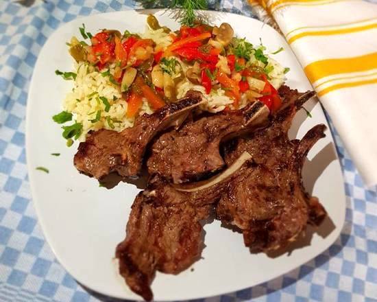 A: Selections include Grilled Pork Neck, Grilled Chicken Breast, Grilled Lamb Chops, and Pastramă de oaie (Lamb Pastrami).