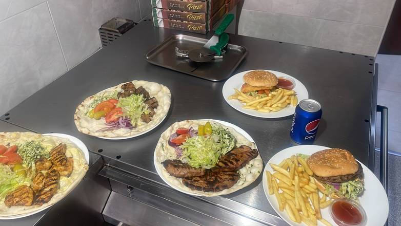 A: The Doner Kebab Meal typically includes a doner kebab served with fries and a canned drink.