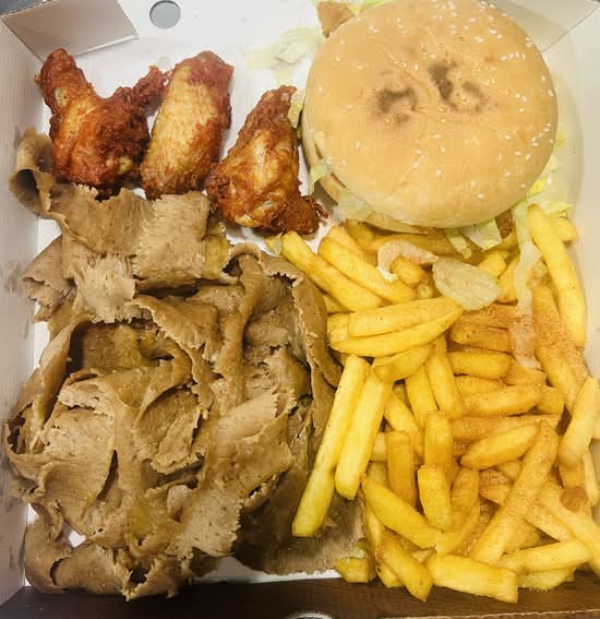 A: This location offers pizza, kebabs, burgers, chicken dishes, wraps, desserts, and various drinks.
