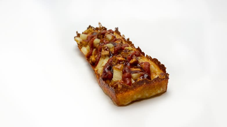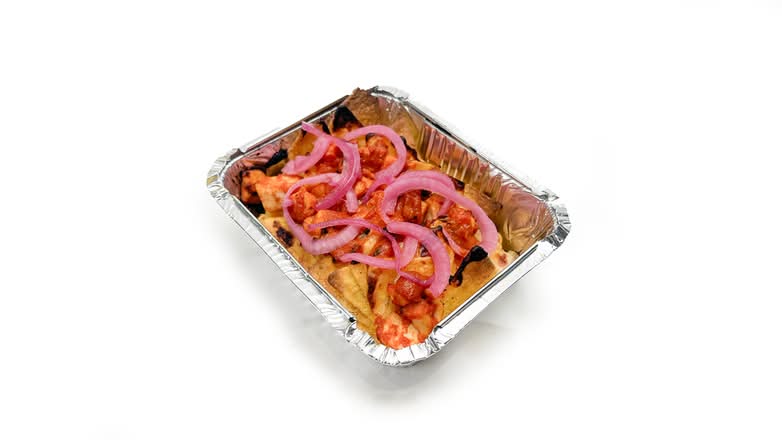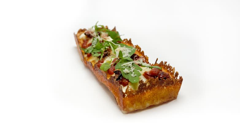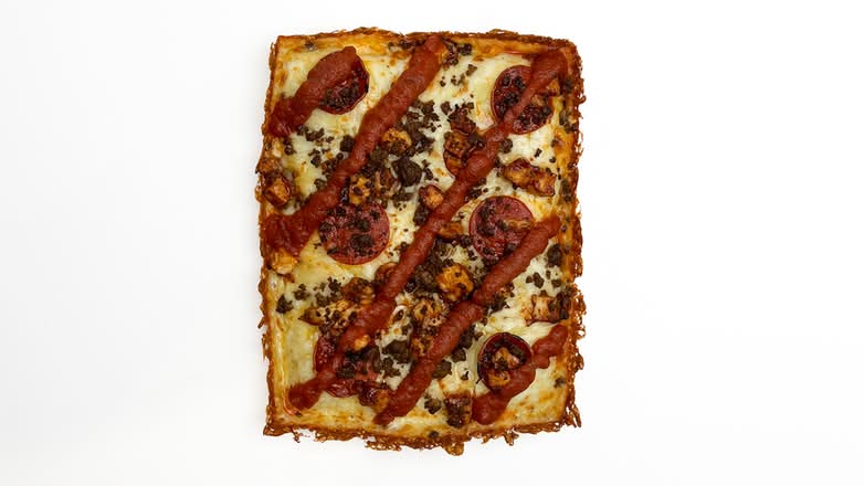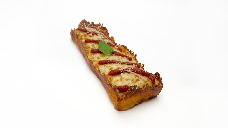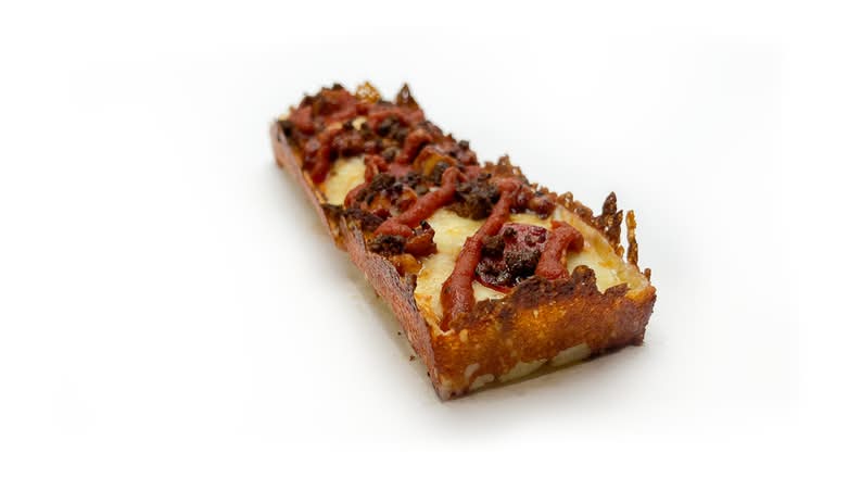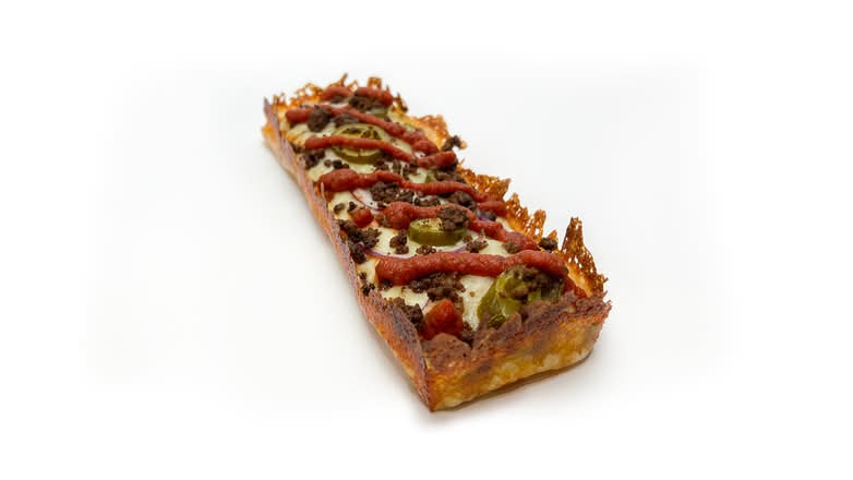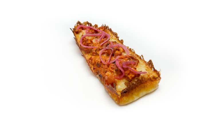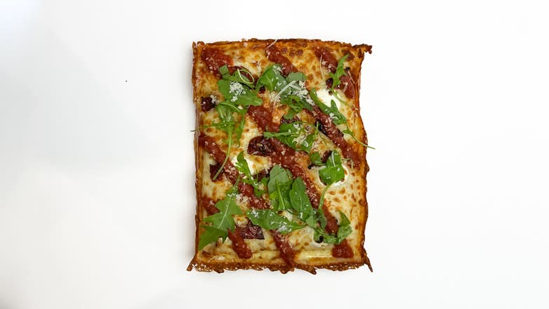 A: We offer pizzas made on an airy focaccia style base, available either by the long slice or as a rectangular pan pizza.