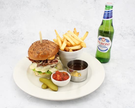 A: Yes, menu items like Burger & Peroni, Burger & Soft Drink, and two-pizza bundles are offered.