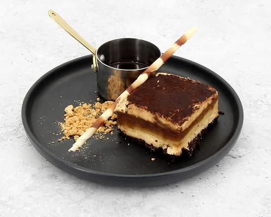 A: Desserts include items such as Tiramisu, home-baked chocolate brownies, and cheese and biscuits.