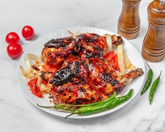 A: The menu includes a MIXED PLATTER designed to serve four persons with various meats, sides, and salad.