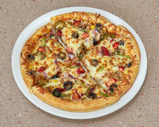 A: Yes, the Veggi Supreme pizza includes mushroom, onion, green pepper, sweetcorn, and fresh tomato.
