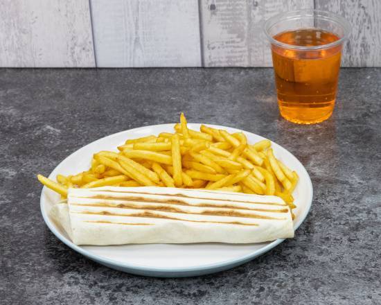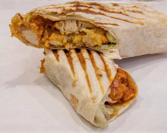 A: Meal options include various burgers and wraps served with sides and sauces.