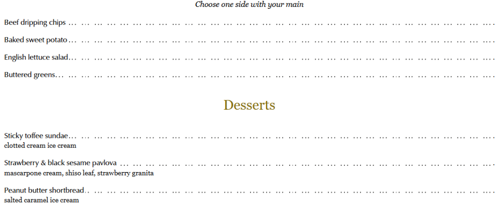 | Beef dripping chips | ยฃ7.00 |
