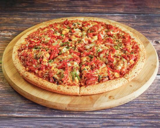 A: Yes, the Veg Supremo Pizza contains mushrooms, cherry tomatoes, sweetcorn, onions, and mixed peppers.