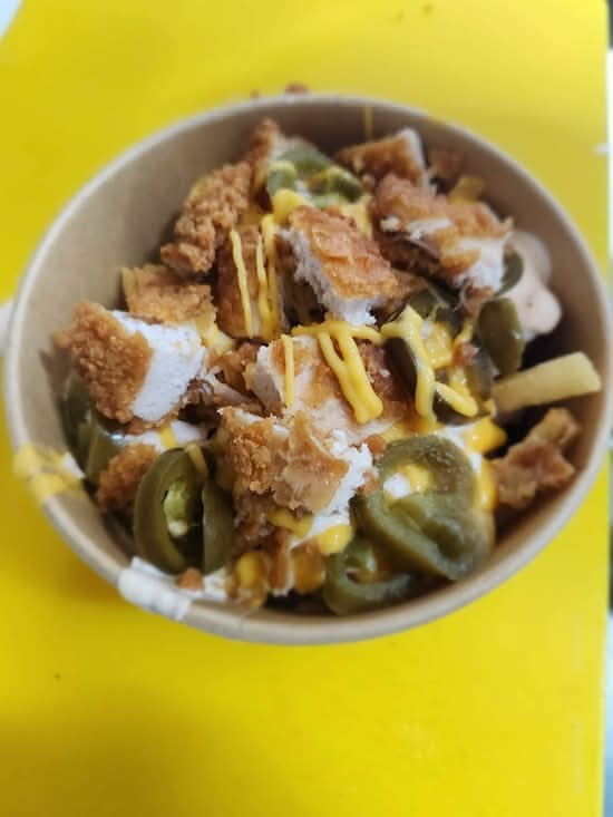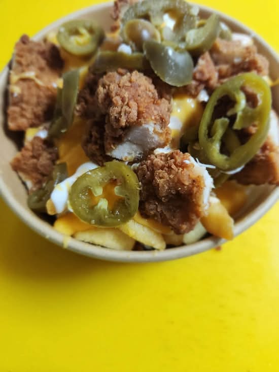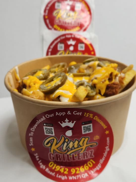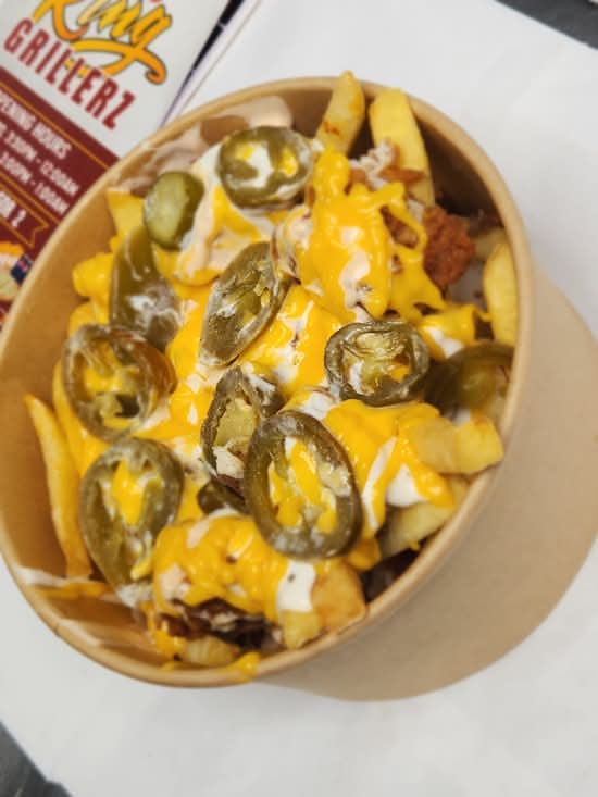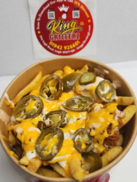 A: Loaded Fries are generally served on golden fries topped with dry onions, jalapeños, warm nacho cheese, and KG Special sauces.