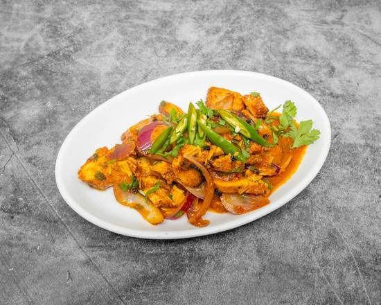 A: Chhoila (Chef’s Special) consists of barbecued tender pieces of chicken with chilli, lemon, onion & various special herbs & spices and is listed as Hot.