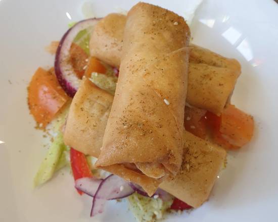A: Cold starters include Hummus, Moutabal Baba Ghanouj, Vine Leaves, and Falafel.