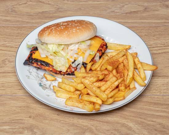 A: Yes, the menu includes a Chicken Burger and a Zinger Burger alongside other stacked burger options.
