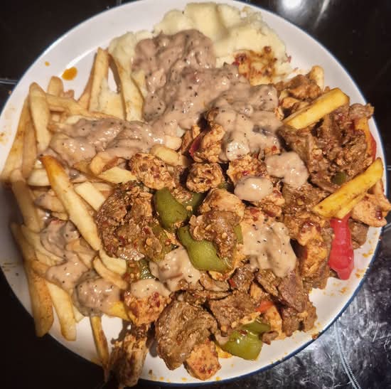 A: This location serves burgers, kebabs, wings, pizza, steak dishes, and some European options.