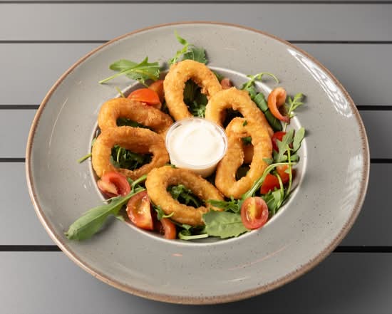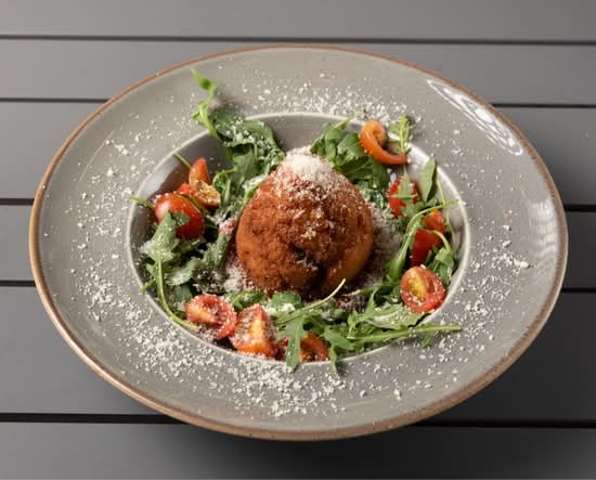 A: Starters available include Calamari, Greek Salad, Arancini Vegetarian, and various other salads.