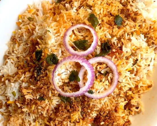 | Keema Biryani Mince meat biryani -Served with a plain curry sauce. |