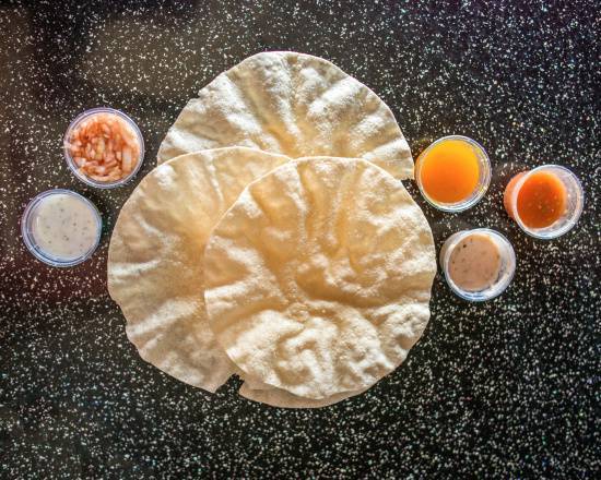 | Plain Poppadom Thin, crispy Indian flatbread served as a starter. |