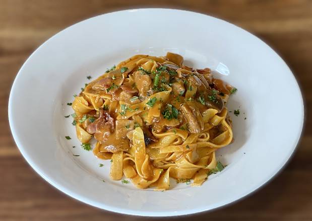 A: A variety of hand-made pasta dishes are offered, including Tagliolini, Fettuccine, and Rigatoni with various sauces.