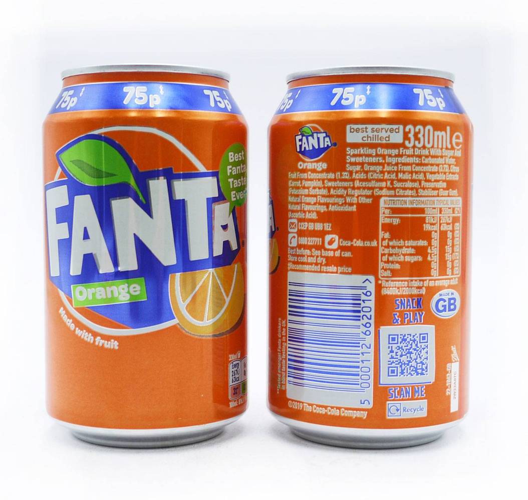 | Fanta Orange 6 x 2L PMP £1.99 Bright, bubbly, instantly refreshing and great tasting. Fanta Orange is made with 100% natural flavours, fruit juice and is caffeine free. Fanta’s cool taste is made with… Real fruit Natural flavours No artificial colours Sugar and sweeteners Serve ice cold for maximum refreshment |