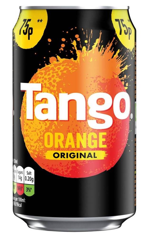 | Tango Orange Original Can PMP 330ml No artificial colours or flavours Vegetarian Society Approved – Vegan Suitable for vegetarians and vegans |