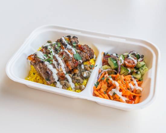 A: The Salad Box and Rice Box are specifically marked as gluten-free options on the menu.