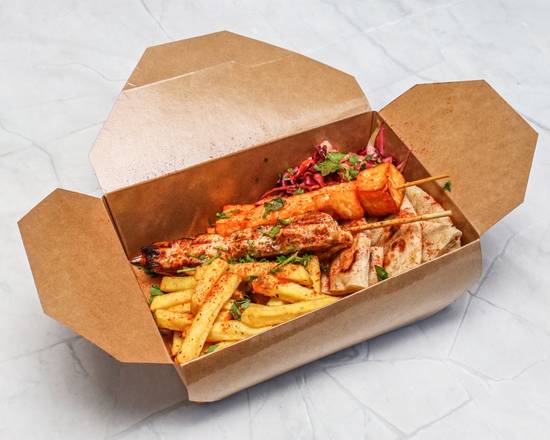 A: The ‘Box’ can be served with a choice of salad, chips, rice, or flatbread to accompany your protein.