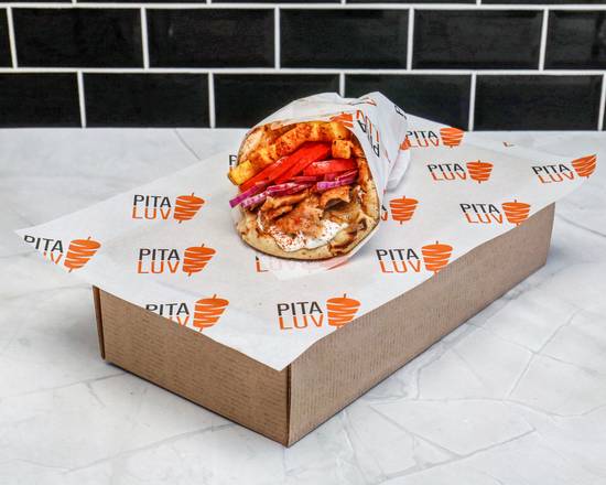 A: The Traditional Greek Flat Bread option serves a protein in a flatbread with fries, tzatziki, and fresh vegetables.