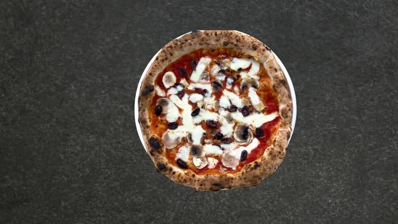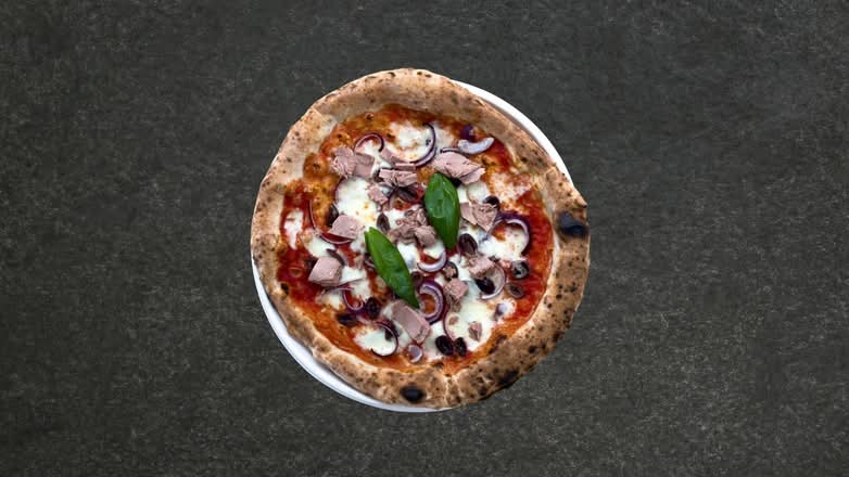 A: The Romana is topped with tomato sauce, fior di latte mozzarella, anchovies, capers, and black olives.
