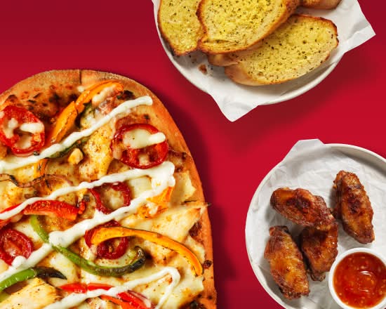 A: Available sides include Garlic Bread, Fries, Onion Rings, Chicken Wings, and various Loaded Cheesy Bite Bites.