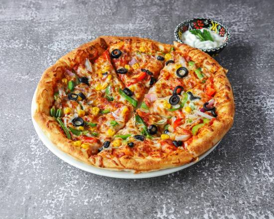 A: The menu includes pizzas such as Margherita, Veggie Pizza, Pepperoni Delight, and Tandoori Chicken Delight Pizza.