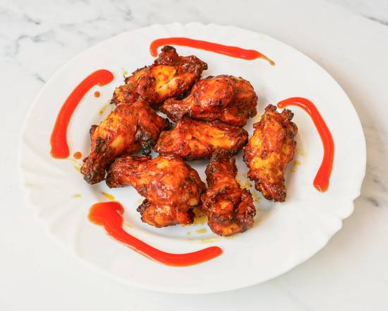 A: The menu includes items featuring tandoori chicken, chicken tikka, and chicken wings as side orders.