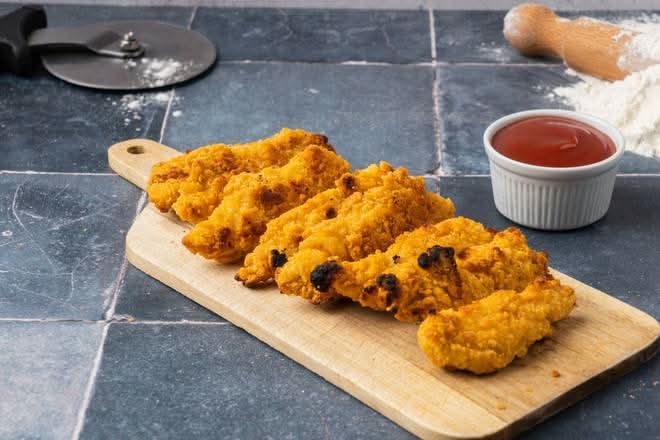 A: Sides include garlic bread, roasted potato wedges, various salads, and roasted chicken strips.