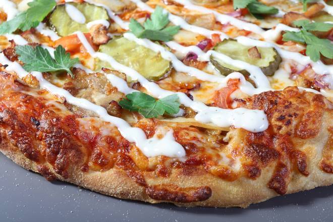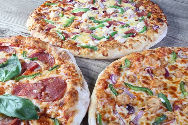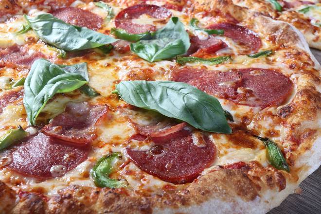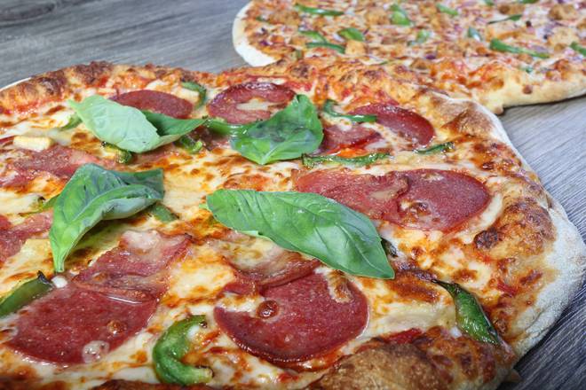PIZZA, made by special in-house fresh dough, using extra virgin olive oil, hand stretched every order.