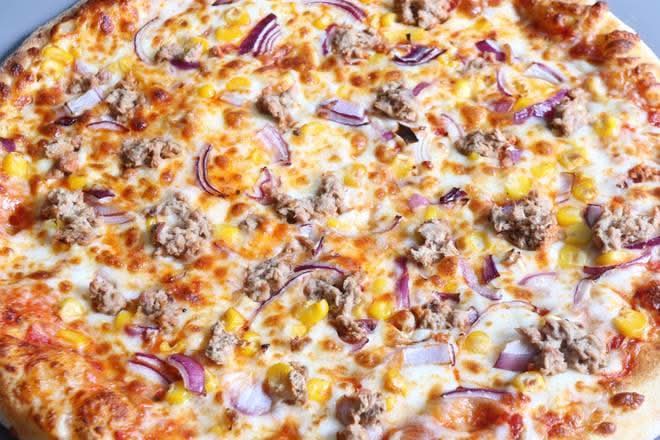 A: The Cheese & Tomato Pizza is listed with a specific price point on the menu.