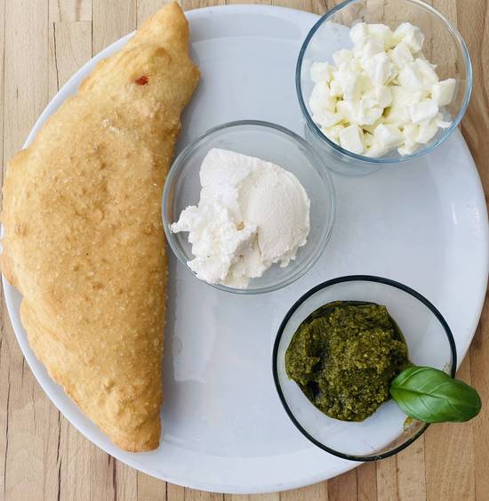 A: The Fritta Con Cicoli is made with Cicoli (pork), provola cheese, ricotta, tomato sauce, and black pepper.
