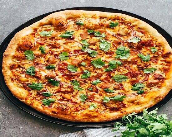 A: Vegetarian options include the Paneer 14″ and Vegetable Deluxe pizzas available in different sizes.