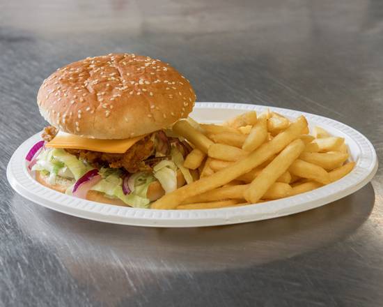 A: Yes, various burger meals are available, typically served with chips and a canned drink.