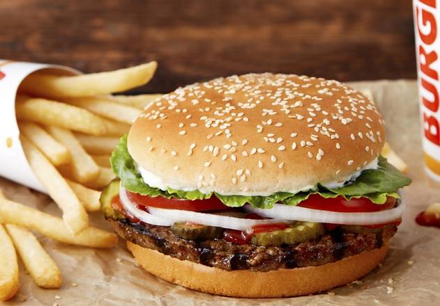 A: The lowest-priced standard burger meal is listed at a specific value on the menu.