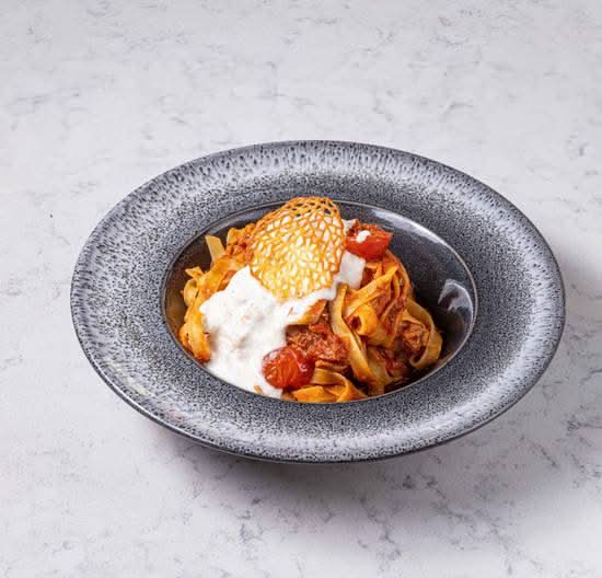 A: The Tagliatelle Ragu di Agnello features a slow-braised lamb ragu topped with smoked stracciatella.