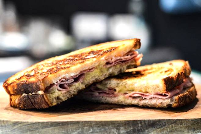 A: Sandwiches include options like Chicken & Avocado, Salmon Bagel, and Ham & Cheese Toastie.