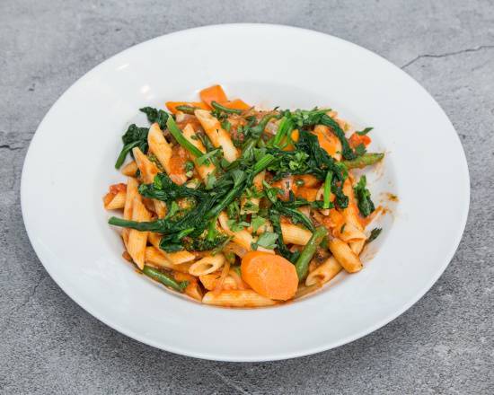 A: The menu features various pasta options including Carbonara, Bolognese, seafood linguine, and vegetarian ravioli.