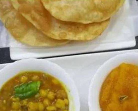 A: A Full Punjabi Breakfast option featuring Chana, Halva, and Puri is available.