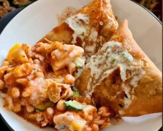 A: Vegetable Samosas and Vegetable Samosa Chaat are listed as starter options.